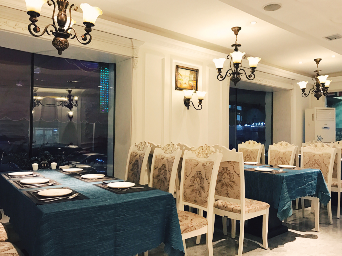 哈市首家土耳其风味餐厅噢,餐厅简欧范儿~高端优雅、整体运用地中海色调,赭石色、钴蓝色和白色为主。