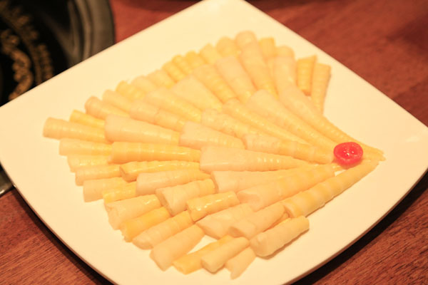 第二轮的甘香就要加入野生松茸等高级菌类来提升了,姬松茸、野生竹笙是调味的最佳菌类,味道鲜美,第一次吃就完全被征服,哪有不爱之道理,就是价格略高些,涮香菇、蟹味菇也一样不会辜负猪肚锅的鲜美甘香。想要喝到更浓郁的汤汁,就要涮肉了,精选上脑和牛肉大四喜推荐哦,肉味香浓咬感好。