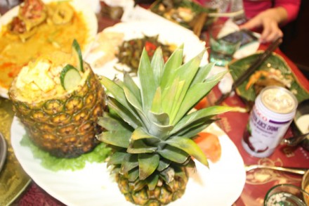 如果你想在哈尔滨品尝到正宗的泰国风味美食,这里绝对是一个不错的选择。店内装修主视觉是时下比较流行的颜色土豪金,金灿灿的,环境舒适、时尚典雅,特色格局,餐料、水果、鲜花、包括店内饰品都是由泰国空运而来,真是不出国门就可以享受到正宗的泰国美食。