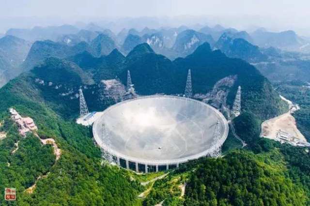 位于贵州黔南州平塘县大窝凼的世界最大单口径射电望远镜——500米口径球面射电望远镜FAST(2016年9月24日摄)。新华社记者刘续摄