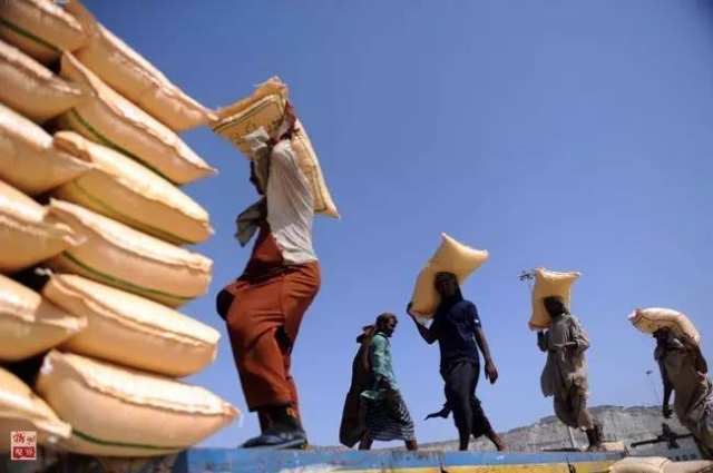 巴基斯坦瓜达尔港码头的货运工人在装运饲料(2015年5月11日摄)。由中国援建的瓜达尔港,是中巴友好的象征,也是中巴经济走廊重要项目。2013年2月,中国海外港口控股有限公司开始接管瓜达尔港的运营。新华社记者黄宗治摄
