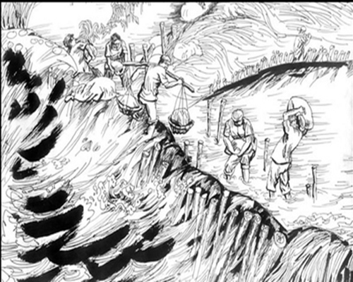 记得有年夏天家乡发洪水,村里人照例跑到堤上加固堤防,待要打桩时,一股巨大的洪流袭来,将其中一段河堤垮。危急时刻,一帮年轻人冲了上去,采取堆沙袋、打木桩的办法堵决口,由于填堵及时,河水被牢牢地锁在河堤内。