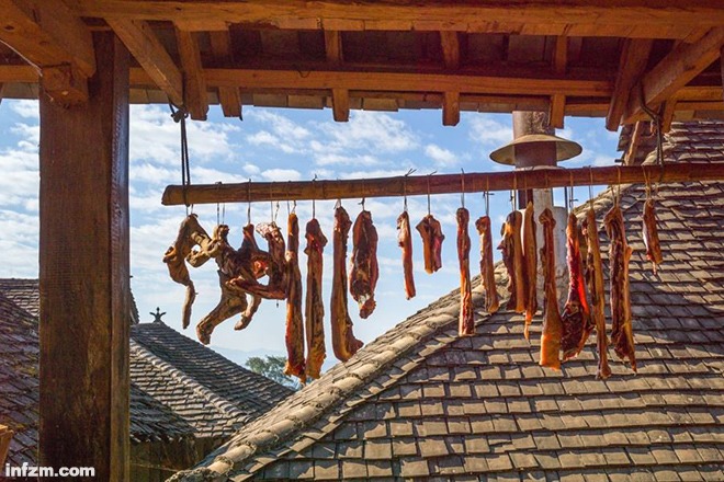 阳光下,院子里晾晒的腊肉,油光光,亮晶晶,一度寓意着富足。(南方周末资料图/图)