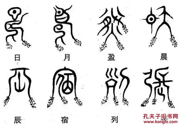 自三皇以前,结绳为政,至太昊氏,文字生焉。所谓依类象形谓之文,形声相益谓之字,着于竹帛谓之书。书者以代结绳之政也,故字有六文:一曰象形,“日”“月”是也;二曰指事,“上”、“下”是也;三曰形声,“江”、“河”是也;四曰会意,“武”、“信”是也;五曰转注,“考”、“老” 是也;六曰假借,“令”、“长”是也。又曰字有五易,苍颉变古文,史籀制大篆,李斯制小篆,程邈制隶书,汉代作章草是也。其八体者,更加刻符、摹印、虫书、署书、殳书、传信并大小篆,为八体也。后汉东阳公徐安于搜诸史籍,得十二时书,皆象神形也。又加二十三体,共定五十有六,列之于后: