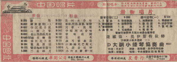 香港报纸登载的关于中国唱片的广告(1960年)。
