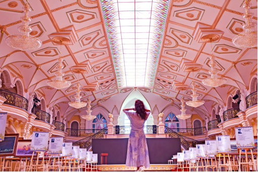 豪华的殿堂大厅,漂亮的穹顶、美丽的灯饰,这里可以举行歌舞演出和各种婚礼、宴会。