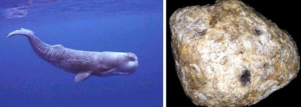 现代科学研究认为,龙涎香是抹香鲸消化道内的分泌物,是一种类似于橡胶状的物质,其中的多种成分具有沁人心脾的芳香。刚刚排出的“龙涎香”为黑色的黏稠物,漂浮在海上,有浓重的腥臭气。经过阳光的曝晒,空气的催化,海水的浸泡,颜色由最初的黑色逐渐变为灰褐色、灰色、白色,散发出持久的香气。这个过程需要几十年甚至上百年时间。龙涎香也是一味中药,具有行气活血、散结止痛、利水通淋、理气化痰等功效,用于治疗咳喘气逆、心腹疼痛等症,是各类动物香料中最名贵的一种。因数量稀少,功效独特,极为难得,常被誉为“灰色金子”。再有,龙涎香挥发极其缓慢,留香时间甚长,是其他任何一种香料都无法相比的。因此龙涎香一般不单独使用,而是合入其他香料,使整体香气得到增益并持久保留。