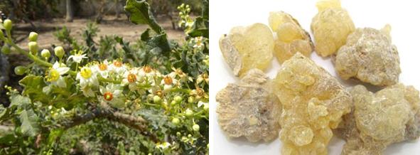 ⑦乳香。又称乳头香、熏陆香、马尾香、塌香、天泽香、摩勒香、多伽罗香。我国史籍中对乳香多有记载,晋代郭义恭《广志》云:“南海波斯国松树脂,紫赤色,如樱桃者名曰乳香”。宋代赵汝适《诸蕃志》云:“乳香,一名熏陆香,出大食之麻罗拔、施曷、奴发三国深山穷谷中。”也就是今天的伊朗、阿拉伯半岛等地盛产乳香。乳香自古名贵,但乳香树却是其貌不扬的灌木或小乔木。采收乳香时,在树干上割出伤口,切口处便会流出乳液状的白色树脂,几周后便凝固成半透明的颗粒,为乳头状、泪滴状或黏结成不规则的团块(图7)。乳香是常用的中药材,可行气活血、消肿生肌,用于治疗多种病症。阿拉伯人在公元前二千多年前就开始使用乳香,那里的医生常用乳香治疗心脏、肾脏等疾病,他们出诊前要用浓烈的乳香熏衣以防止被病人传染。在历史上,阿曼地区曾经是中国乳香的重要供应地,也是“海上丝路”的重要港口。今天的阿曼依然盛行熏烧乳香,商场、酒店、咖啡馆,处处都能闻到飘散的乳香味。