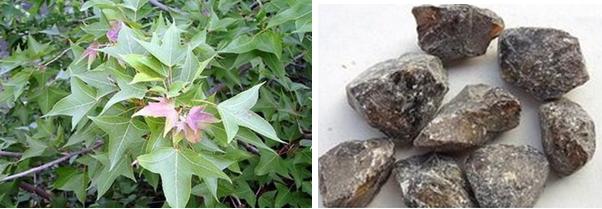 ⑤苏合香。又称苏合油、苏合香油、帝膏,是最早传入我国的树脂类香料之一。《西域传》记载:“大秦国,一名犂犍,以在海西亦名云汉。……人合香谓之香,煎其汁为苏合油,其津为苏合油香。”《后汉书》也称,苏合香“出大秦国。”这里的大秦国,是指古代西域的罗马帝国,现在的土耳其、伊朗、叙利亚一带。苏合香是重要的芳香开窍类药材(图5),在我国使用达二千年之久,有开郁化痰,行气活血的功效。当今绝大多数治心绞痛的急救中药都含有苏合香成分。着名的中成药“苏合香丸”就是用苏合香、檀香、安息香、沉香等制成。据《梦溪笔谈》记载,宋真宗曾以苏合香酒赐臣下调补身体。《红楼梦》中多次提到的冷香丸中,也包含着苏合香。