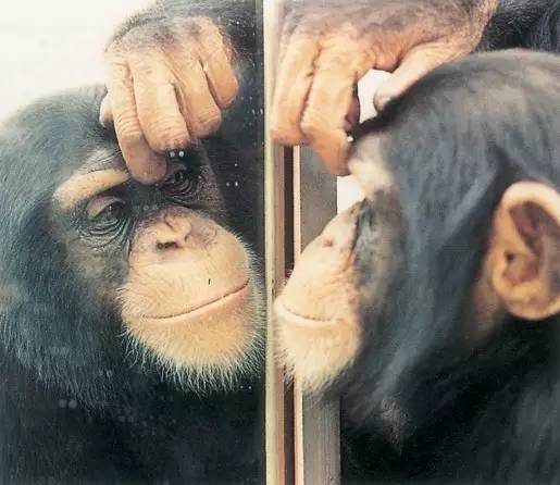 黑猩猩会用镜子来查看自己的口腔,对着镜子做鬼脸,检查性器官,抹掉眼角的粘液