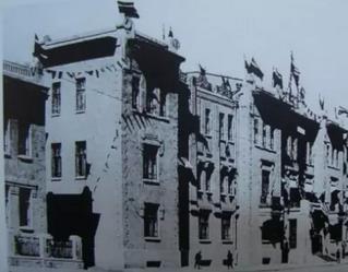 插满满洲国旗帜的哈尔滨伪满铁道局(今西大直街哈尔滨铁路局所在地)