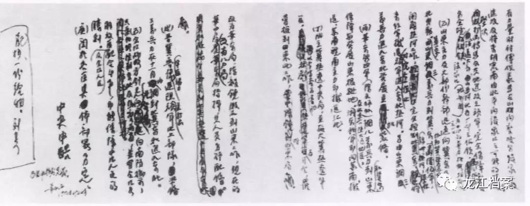 刘少奇为中共中央起草的“向北发展,向南防御”的战略方针手稿