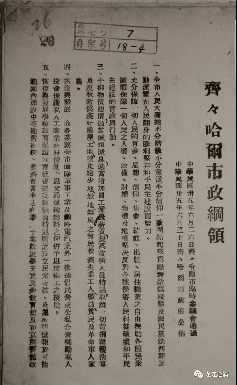 齐齐哈尔市临时参议会通过的《齐齐哈尔市政纲领》