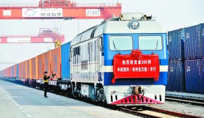 “一带一路”倡议正逐步成为人类解决共同发展问题的“中国方案”。图为第200列郑州至汉堡的中欧班列准备从郑州铁路集装箱中心站发车。图片为新华社发