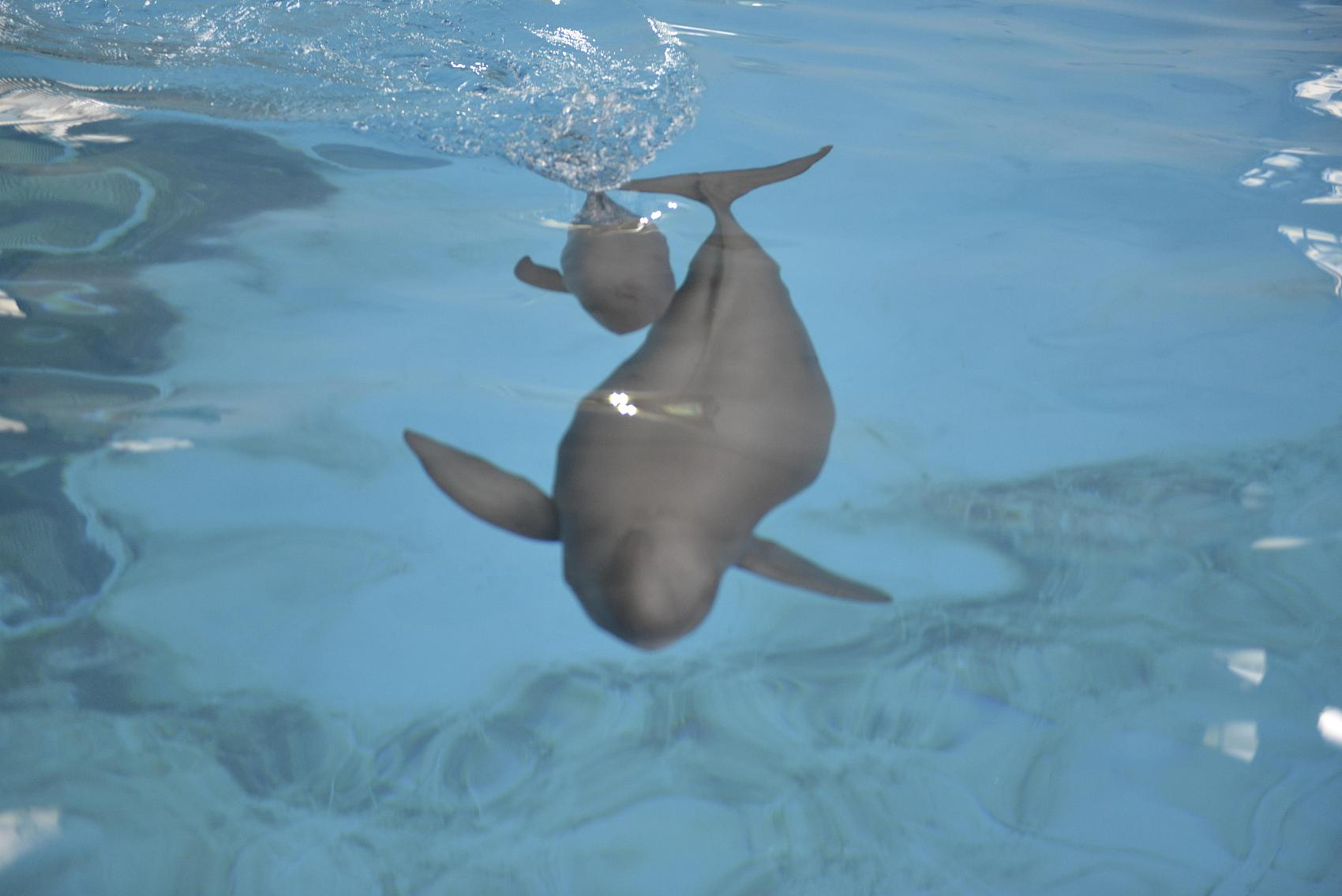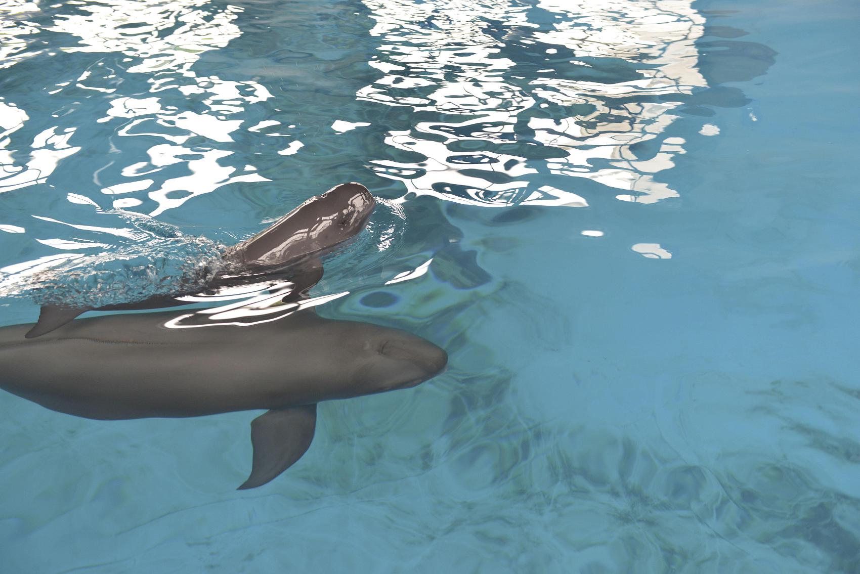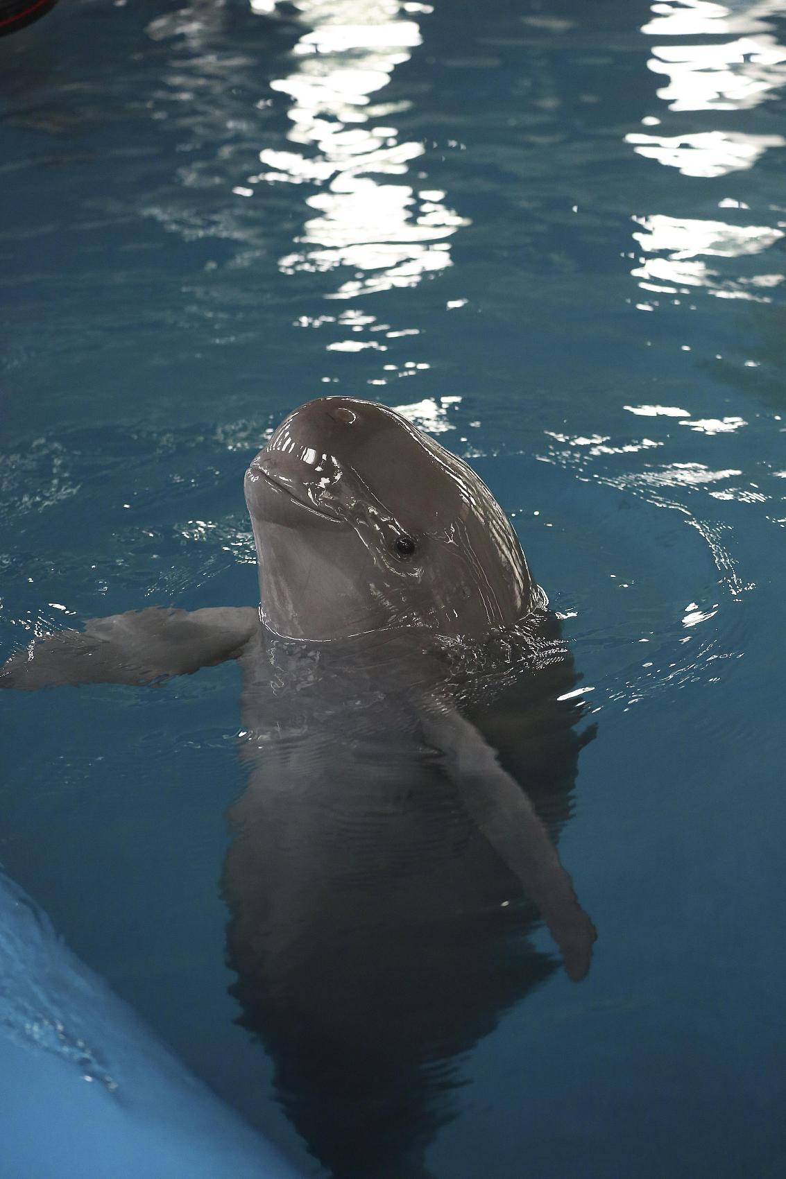 2017年2月24日,湖北武汉,小江豚母亲“福七”。2018年9月11日,中国科学院发布消息,该院位于湖北武汉的水生生物研究所(中科院水生所)白鱀豚馆一头雄性小江豚出生已满百日,这也是该所自2005年全球首例人工饲养长江江豚成功繁殖以来成活的第二头小江豚。