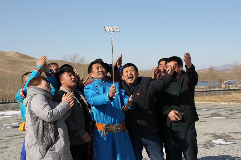 △东萨拉嘎查牧民通过微信与在北京开会的吴云波视频通话