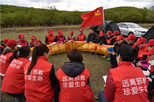 为了深入开展反邪教宣传活动,2017年5月5日,齐齐哈尔市碾子山区跃进街道办事处组织党员干部开展“赏家乡美景宣传反邪教警示教育”专题党日活动。活动通过向全体党员干部宣传反邪教知识,倡导大家崇尚科学,珍爱生命,拒绝邪教侵蚀,进一步提升了广大党员干部的防范识别邪教能力。