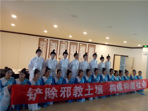 下午3时展演活动在曼妙的古筝曲中拉开帷幕。幼儿园孩子们朗诵的《弟子规》,十五小学学生诵读的《诵经典立德行》,这些源远流长的古训在观众耳边久久回响;东方社区选送的《琴音词赋》倡导群众树立健康的修身方式;人大、政协委员朗诵的《毛泽东长征组诗》弘扬了不怕牺牲、前仆后继、勇往直前的长征精神,引导党员领导干部不忘初心奋力前行。活动现场演员们还合影留念,表达了反邪教的决心。