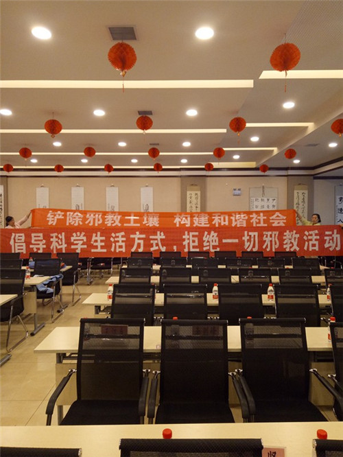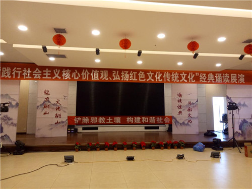 七台河市桃山区结合“文化桃山建设”,将反邪文化融汇其中,进一步增强了反邪教宣传的吸引力和感染力。5月9日“践行社会主义核心价值观,弘扬红色经典文化”的经典诵读暨反邪教宣传展演在七台河市隆达公司展演基地上演,活动现场悬挂起反邪教宣传条幅,营造了浓郁的反邪教文化氛围,参与活动人员约800余人。