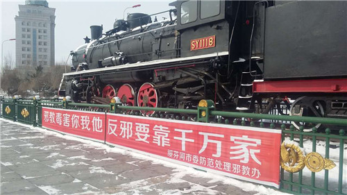 为不断提高市民对邪教的警惕意识,进一步加强自觉抵御邪教侵蚀的能力,倡导崇尚科学、反对邪教的良好风气,近期,绥芬河市采取发放宣传资料、张贴宣传挂图、条幅、展板、电视播放等形式,积极开展反邪教宣传,注重实效,做到家喻户晓,人人皆知。