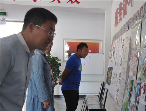 机关干部在观看反邪教警示教育书画摄影展