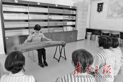 省女子监狱警官在给邪教类服刑人员演奏,通过陶冶她们的情操,让她们更好地接受改造。