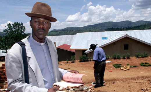 一名当地牧师在“恢复上帝十诫运动”教会集体自杀现场翻看遗留下来的小册子(图片来源:ALEXANDER JOE / AFP / GETTY IMAGES)