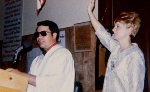 马歇尔·艾普怀尔特,“天堂之门”的创立人和联合领导人,通过电视向教徒发表演说。