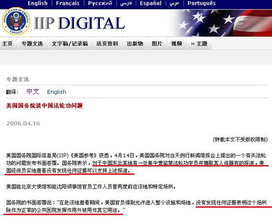 美国国务院国际信息局网页截图