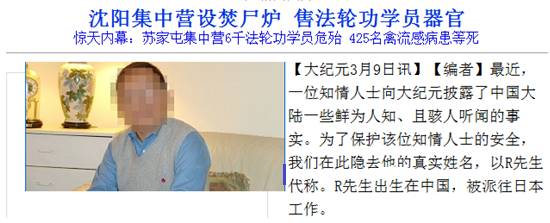 2006年3月,境外“法轮功”邪教媒体抛出了所谓“苏家屯集中营”谣言,声称位于中国辽宁省沈阳市苏家屯区的辽宁省血栓病中西结合医疗中心(简称苏家屯血栓病医院)有一个集中营,关押着6000多名“法轮功”人员,其中三分之二被割取身体器官后投入集中营内的焚尸炉焚烧,他们的身体器官随即被非法出售到全国各地乃至境外。