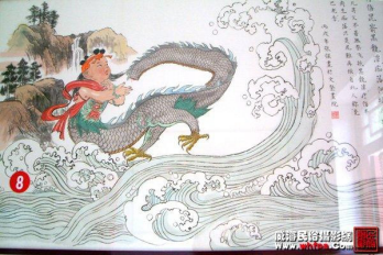 在清朝袁枚的《子不语》和清版《文登县志》书中都记载了秃尾巴老李这个流传二百余年的神话传说。秃尾巴老李在胶东的传说为;小黑龙是山东掖县李家疃人,比较一致的说法是姓李的木匠妻子,在某一年元霄节时去看灯会,因失足落水而受孕,十二年后又在龙年降生。‘断尾’巳有多种说法,胶东的说法是;黑龙生下后,在雷雨闪电中穿窗而去,栖身在村外的小河里,一到天黑后就回家吃奶,李木匠乘它吃奶时用斧子将其尾巴砍下。此说为山东人最为原始也最为普及的说法。此说在流传中不断的充实发展,从黑龙诞生后,又增添了南海斗带鱼精、张天师给他人形、斗蟒除蛤、上天偷药、为母守坟、为母书碑,以及过渤海、闯关东、二龙大战三江口、小白龙退到兴凯湖等。这个传说在胶东的九个市二十多个县广为流传,也形成多个版本。