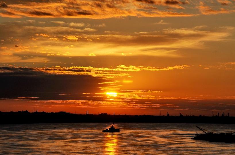 夕阳西下,我坐在松花江北岸江边凉亭的台阶上,望着脚下不分昼夜滚滚东流的江水,心绪随着微微拥挤的波涛而抖动。江南岸,高楼大厦鳞次栉比,彰显着盛世和谐的昌盛;西边,千万道晚霞冲开天幕,温柔的洒满江面,水波泛滥着七彩霞光,使水天一色蔚为壮观。