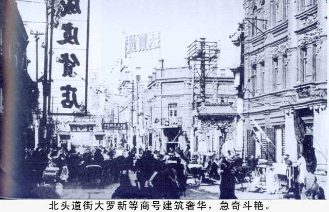 当年的埠头区是外国人的世界,洋人云集于此几乎所有的街道都是外国名。特别是中国大街(现中央大街),洋味十足。1909年,日商率先在此建起松浦洋行;1913年,马迭尔旅馆建成。紧接着英、美、法、德、意等国相继大兴土木。时至1921年,外国商店已有200余家。而中国人开的商号,寥寥无几。时至1933年,设在这里的中国商号仅有13家。