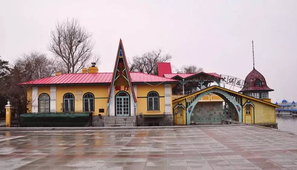 在道里区九站街比邻的江畔,绿树掩映中有一座特别的欧式建筑。从外表上看,这个构思巧妙的建筑具有西伯利亚式风格。木栅栏似的大门朝向东方,拥有一个橘红色的尖塔。古朴典雅精巧别致的亭台楼阁,吸引着游人的眼球。主建筑像一艘就要出发的巨轮,一半卧于江堤,一半伸入水面。外飘式的观景台,让人在任何一个方向,都可以领略松花江的秀美。静坐沉思,松花江水波不惊,感觉整栋建筑在江上航行。25年前,我第一次步行穿过江边公园,曾经惊诧于它的美丽,在此徘徊许久。许多醉于爱情的男女,以它做背景,留下甜蜜的瞬间。我用眼睛记录下这一切,留做了今天的回忆。