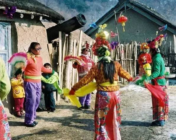 拧大秧歌,穿上服饰、画上装,老人小孩子都喜欢看
