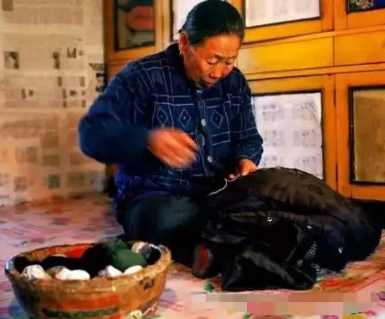 大娘在补衣服,而她的旁边那个像盆一样的东西你知道叫什么吗?