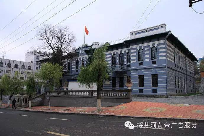 这是绥芬河俄式建筑的代表,约建于1910年前后,位于光华路中段东侧,西向隔路与俄侨学校相对,为灰色二层俄式建筑,呈u 形,黑铁瓦盖。正门朝西,门前有石阶与路相通,站在二楼前廊可观到市区大部,窗户窄且高,上部为圆拱形。