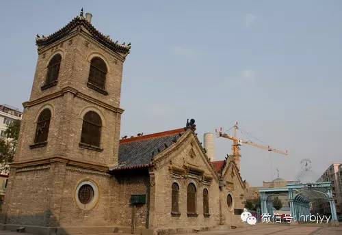 由于呼兰河水逐年东浸,土崖崩塌,危及整个建筑群,在政府和社会各界的大力支持下,终于在1956年将寺庙迁至和平街重新建立起来,即今建筑群。迁建的清真寺占地面积3000平方米,基本使用原建筑构件和材料,按原形制而建,比原殿多一层瑶殿。主体建筑为拜殿和瑶殿,位于寺庙中央,北侧为5间小暖殿、会客室、教长室,东侧为3间掌教宿舍、沐浴室,西侧为2间暖殿。瑶殿塔檐下悬挂“清真古风”匾额一方。整个建筑群为仿中国古典式建筑风格,布局古朴典雅,简洁大方。