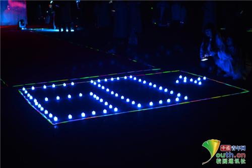 08江西师范大学蓝天环保社用LDE灯在该校青年文化广场摆出60+图案。江西师范大学团委供图