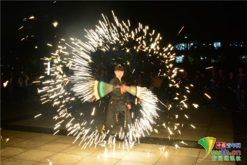 05江西师范大学“地球一小时”开始前,双节棍社团带来精彩表演。江西师范大学团委供图