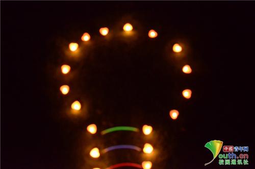 07阜阳师范学院地球一小时活动中,学生们在地上点燃蜡烛。中国青年网通讯员 李冬冬 摄