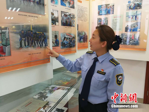 常洪霞给记者介绍车队历史 中新网记者张尼摄