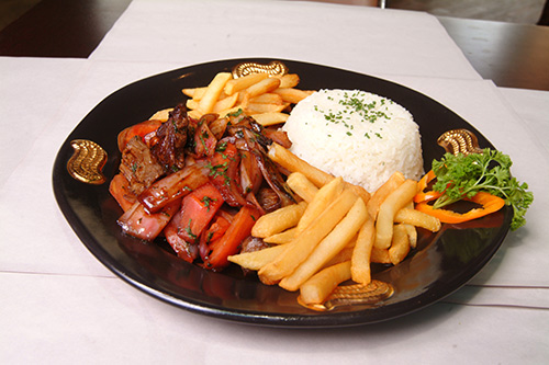 在秘鲁,有一道叫“lomo saltado”饭很流行,它也并非只有在中餐馆才吃得到,几乎秘鲁街头的任何餐厅都有卖,当地人早已将它当成自己的饮食了。而这道炒饭做法呢,与番茄牛肉盖饭很相似,就是把牛里脊肉切成长条,腌渍过后与洋葱和番茄同炒,然后又以酱油、盐、胡椒作为主要调味,最后再撒上葱花,香喷喷的炒饭就出炉了。从这道饭菜中不难看出中国菜的情节,唯一的区别在于秘鲁人喜欢吃土豆,所以吃的时候还会搭配上薯条。