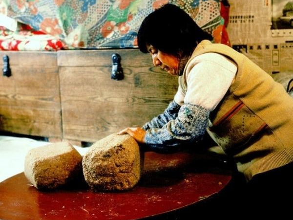 东北人喜欢吃用古老方法制做的大酱,一般在年前,先把黄豆蒸烂捣成泥,再用力拍成长方形的酱块,放到不起眼的地方晒干,直到发酵在酱块上面长出一层白毛。到第二年清明节的时候,用刷子把酱块表面白毛刷干净,剁成小块后放到缸里,用自制的木棒捣酱,捣的同时不断撇掉上面的脏沫子,连续每天如此,直到成为家家户户需要的农家酱。
