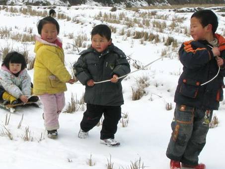 大年的东北到处白雪皑皑,这也是东北孩子们冬季里最快乐的时节。虽然天气很冷,可那些数不清的冰雪乐趣,激发出人们对它的无尽的热情。孩子们纷纷走出家门,堆雪人、打雪仗,占坑儿,在雪地里欢快的打滚、玩雪爬犁、蹬脚划子、打冰猴儿、滑冰、打冰球儿、滑雪,不亦乐乎。冬季的江面光滑如镜,透明照人,玩得个个汗流满面。以前的东北各民族过年期间,在户外的主要交通工具靠爬犁,户外的山川沟野之间雪特大,往往填没了“道眼”,只有爬犁可以不分道路,只要有冰、有雪的地方,便可在其上面行走,靠的是动物的牵引,有马拉爬犁、狗拉爬犁等。现在随着交通的日益发达,爬犁作为交通工具早已退出了人们的视线和生活,但是爬犁这一传统工具并没有消失,人们用它来给生活增添无尽的情趣,让生活处处充满了欢声笑语。