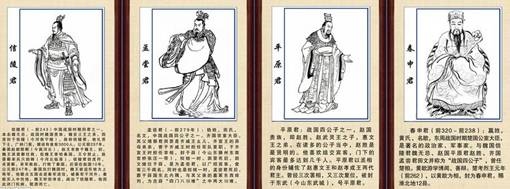 中国战国时代末期秦国越来越强大,各诸侯国贵族为了对付秦国的入侵和挽救本国的灭亡,竭力网罗人才。他们礼贤下士,广招宾客,以扩大自己的势力,因此养“士”(包括学士、方士、策士或术士以及食客)之风盛行。当时,以养“士”着称的有魏国的信陵君魏无忌、齐国的孟尝君田文、赵国的平原君赵胜、楚国的春申君黄歇。因其四人都是王公贵族(一般是国家君王的后代),后人称之为“战国四公子”。【详细】