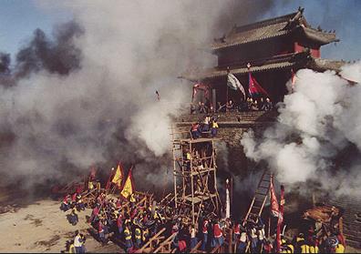 二十四日,在努尔哈赤的指挥下,后金军对宁远城展开了激烈的攻城战。袁崇焕亲自指挥明军,张弓射箭,发射各种火器,狠狠打击后金军。战斗打得激烈的时候,城上的箭和炮石就像雨点一样地发射出去,后金军被打死打伤的很多。努尔哈赤亲自督战,企图凿城而入。顽强的后金士兵,头上顶着挡箭牌,冒着箭石火器,带着攻城器械,前队倒下,后队又跟了上来,谁也不敢后退。明军虽然个个奋勇,但是城中炮石火器毕竟有限,又不可能指望高第派兵来援。在这种形势下,袁崇焕认为明军利于速战速胜。他命令炮手们对准后金军密集的地方,开炮轰击。只见炮声响处,烟火腾空而起,后金军血肉横飞,一片一片地倒了下去。